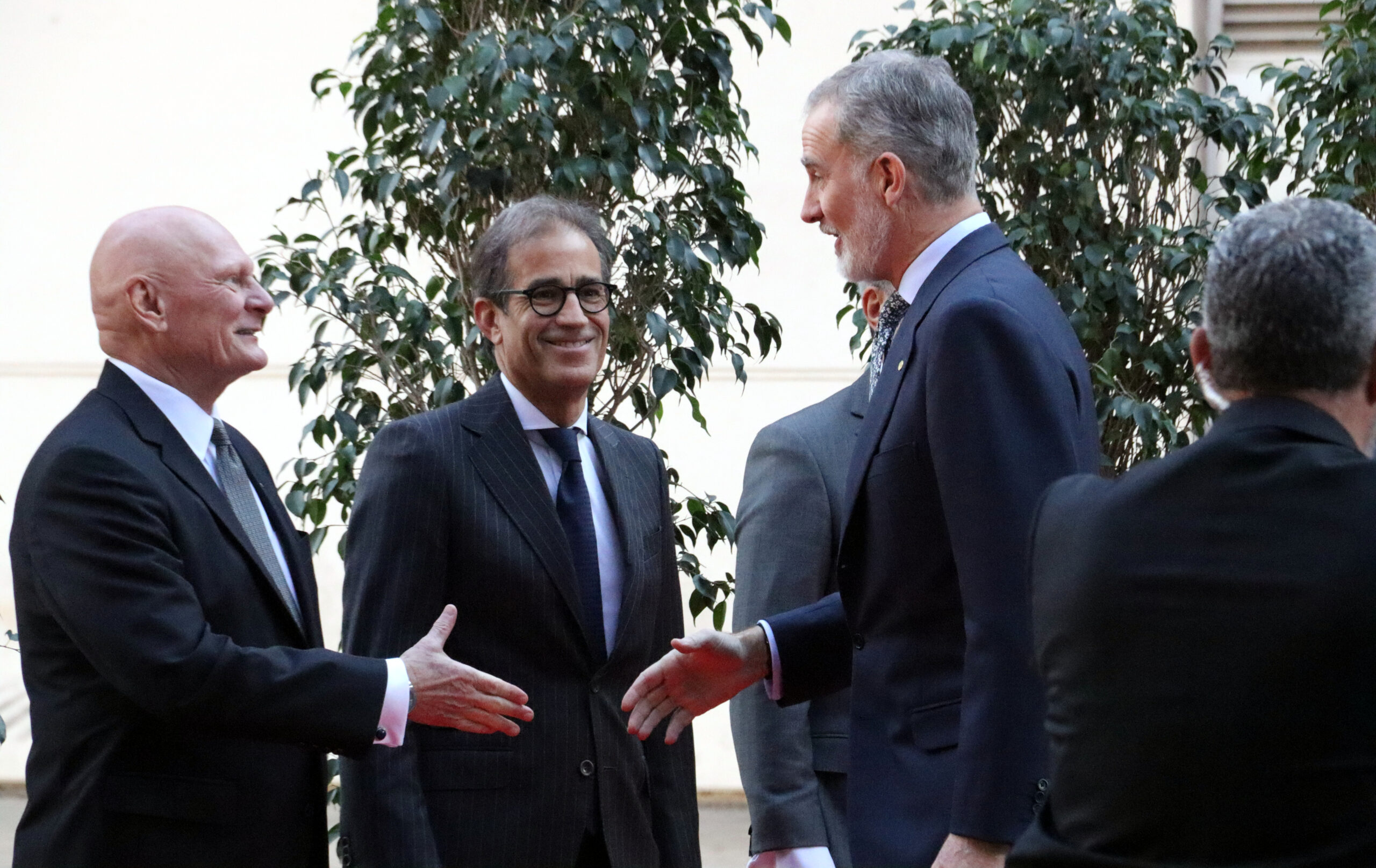En la rebuda i salutació inicial també hi havia el ministre d’Indústria i Turisme, Jordi Hereu, i el de Transformació Digital, Óscar López, l’alcalde de Barcelona, Jaume Collboni, i el conseller delegat de la GSMA, John Hoffmann, entre d’altres.