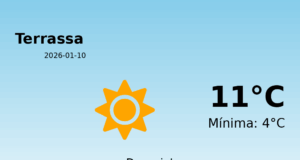 Predicció Meteorològica per Terrassa - 11 de gener de 2026 Avui, Terrassa experimentarà condicions meteorològiques força hivernals amb temperatures que es mouran entre una màxima...