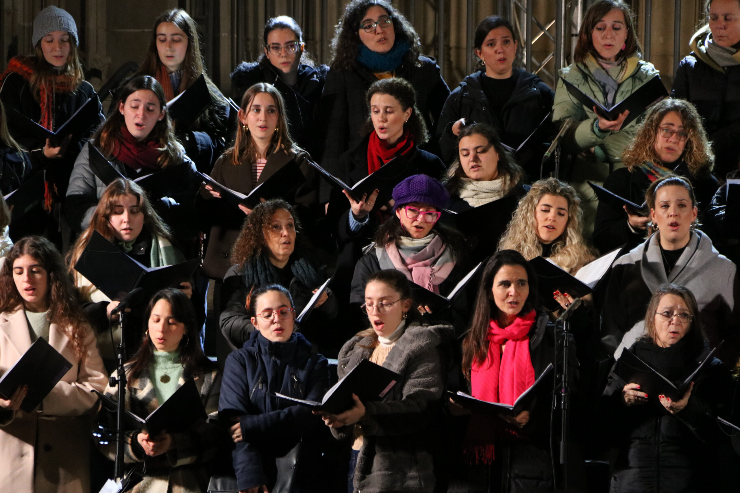 ACN Barcelona – El tradicional concert de nadales de l’Orfeó Català ha aplegat un miler de persones davant la catedral de Barcelona, segons els organitzadors. Els cantaires de l’Orfeó Català, acompanyats d’alguns membres del Cor Jove i del Cor de Noies de l’Orfeó Català, han ofert al públic un repertori que combina cançons tradicionals nadalenques i d’altres interpretades al Concert de Sant Esteve. Enguany, el grup ha estat dirigit per Xavier Puig, que s’ha estrenat en aquest concert popular de nadales, i ha comptat amb Pau Casan al piano. L’actuació ha tingut lloc al Pla de la Seu, just davant de la catedral de Barcelona, per segon any consecutiu.