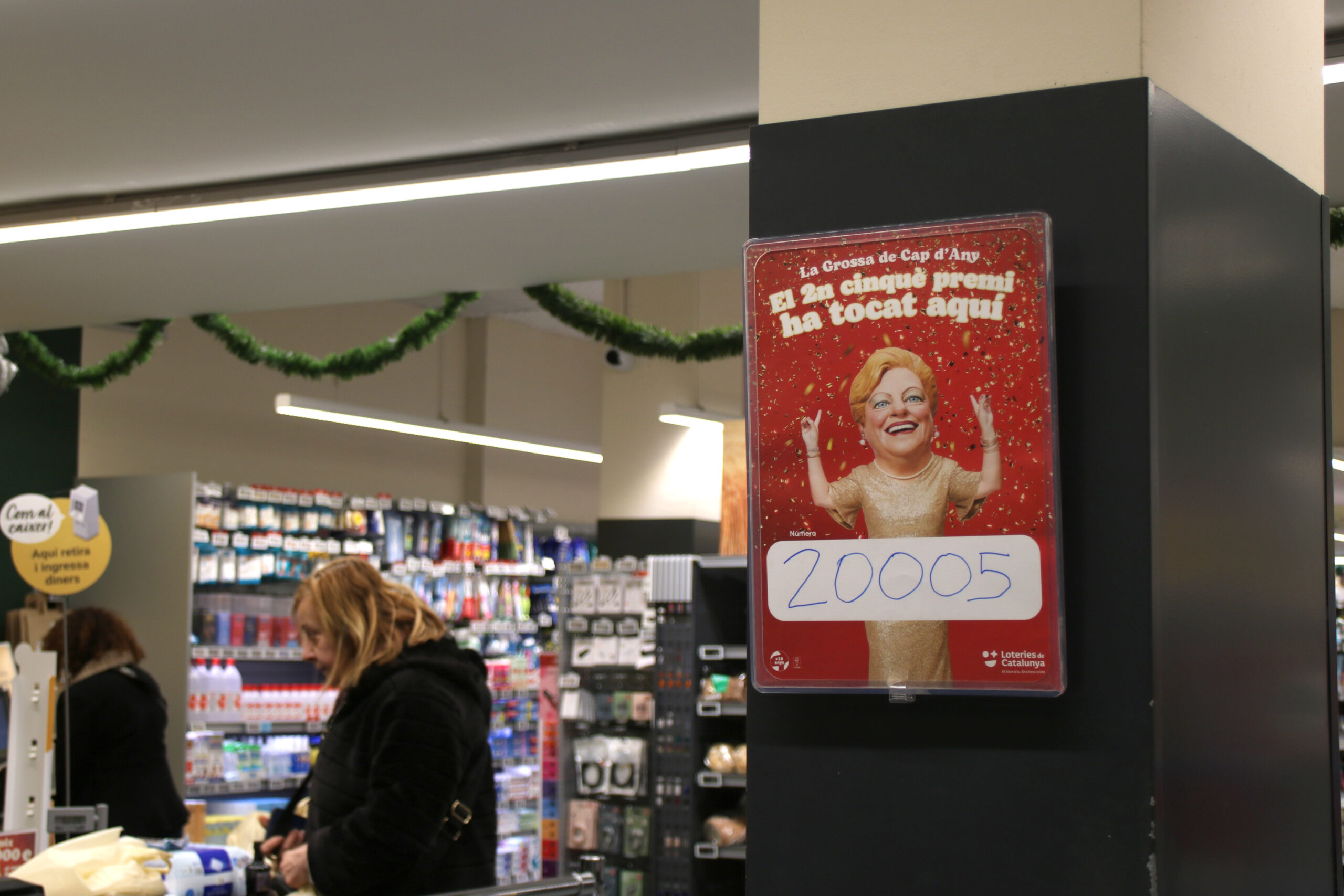 ACN Barcelona – Un dels tres cinquens premis de la Grossa de Cap d’Any, el 20005, s’ha venut al supermercat Bonpreu del carrer Provença, 335 de Barcelona, enmig de les obres que s’estan fent a l’estació del metro de Verdaguer, a l’intercanviador entre les línies 4 i 5. La gerent de l’establiment, Montse Peiró, ha explicat a l’ACN que per aquests treballs és una “zona de molt de pas”. Peiró no ha concretat el nombre de bitllets venuts, però ha garantit que se n’han retornat pocs. La responsable del local de l’Eixample ha revelat que una de les agraciades amb 5.000 bitllets euros al bitllet és una treballadora. “El va comprar ahir al matí”, ha detallat i ha explicat que aquest dimecres li tocava fer festa: “Esperem que torni”.